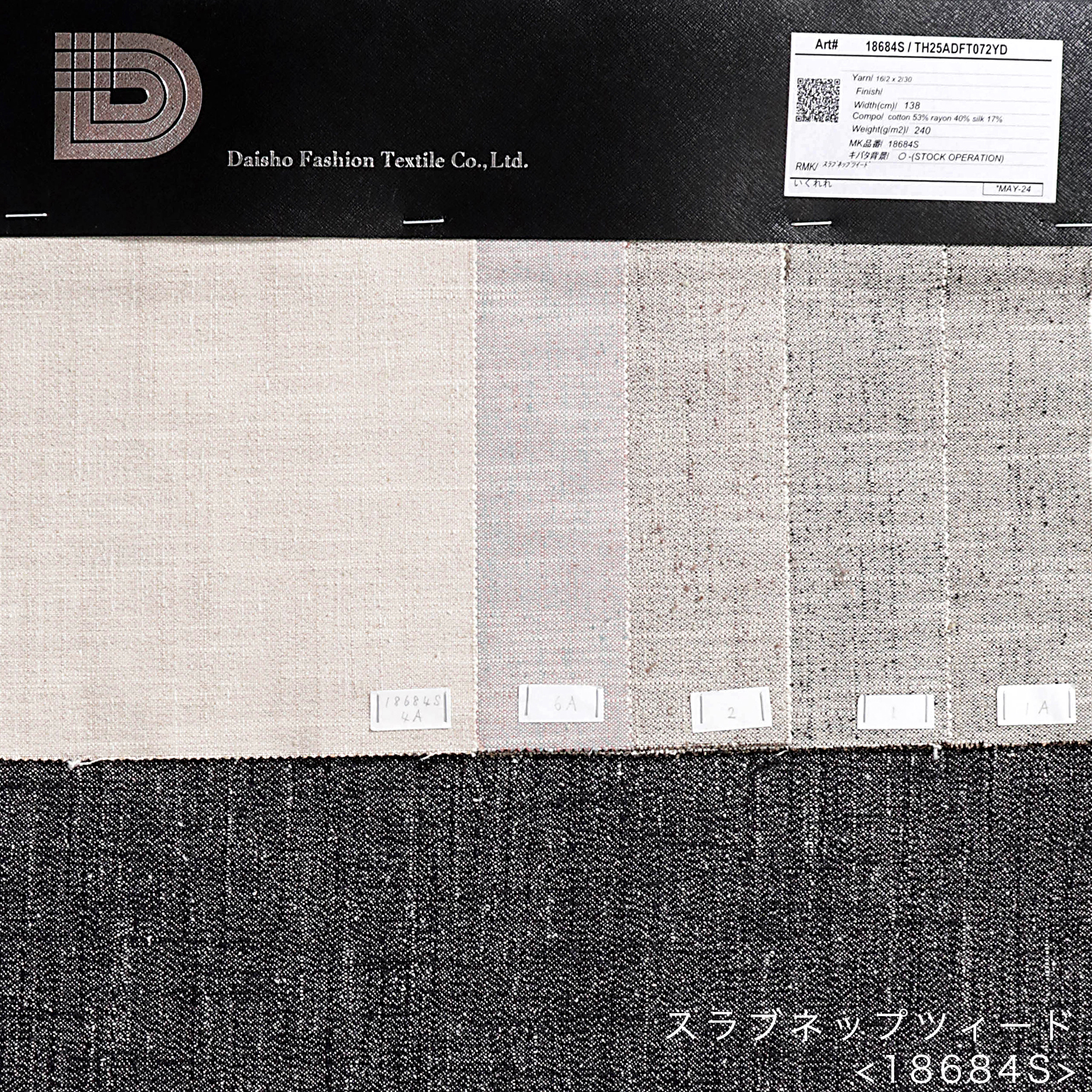 当社のリスク素材は60%が尾州産地で40%は他産地の構成になります 60% of our risk materials come from Bishu and 40% from other regions. 2/72WOOL含浸トロピカル<10865T> 強撚2/72サイロストレッチ ギャバ<15304K> super120sリバーシャルムビーバー<10892T> 1/24カシミヤ混フラノ<18948T> 2/48 WOOL 古軍SERGE<15307K> スラブネップツィード<18684S> 80/-コンパクトツィル/ラスターTKS<14060T> モヘアトロピカル<19003T> 2Wayダブルクロス<14900S> 1/16 CASHMERE BEAVER<11300K> 高密ポプリン 撥水<11689T> 強撚キュプラドビーボーダーワッシャー<12115K> TR/L 平織サマーチェック<18754S> マリンセーラー<10850T> スーパー100カシミヤREVER BEAVER<11305K> モヘアループソトーメルトン仕上げ<18797S> 強撚トリアセT/W トロピカル<12500K> 3/48 S700回強撚トロ<15361T> 60/2 BURBERRY 超撥水<17603S> 60/2 BURBERRY 超撥水<17603S> コンパクトドビーサテンエブノン<11934T> コンパクトドビーサテンエブノン<11934T> SUVIN SEER SUCKER<10615K> VIS/COTTON顔料ブリーチ サテン<13203K> メンズフラノ<18806T> メンズフラノ<18806T> 2/48 チェック <19266S> 2/48 チェック <19266S> 2/48 チェック <19266S> 2/48 チェック <19266S> SuperVIYON トリアセデシン<14907K> 105/2 フィンクスウェザー<16456T> ウールモヘアギャバ<18845T> TA/ソロテックスーストレッチ VIS/麻ウェザー<12303K> C/ラミー ロイヤルライトデニム<11718T> 80/2GIZA-BAKEエコトレンチC0撥水<10622K> 3/60 s700回強撚トロ<15330T> FINXコットン 16ウェル コーデュロイ<16400K> 1/14ラムSUPER100 カレッジメルトン<17302K> リクライドオーガニックモールスキンNSV<11939T> 2/72 高密度ガンクラブ<19120T> スプラッシュ グリッター ツィード<18895K> 100/2米綿シャンブレーウェザー<17610K> リサイクルメモリーPE/Cオックス<12199K> リサイクルメモリーPE/Cオックス<12199K> SUVIN-GIZA ブリティッシュストライプ<10620K> SUVIN-GIZA ロンドンウェザー<10630K> 42/3FINX ウェポン<16461K> FINXライトコードレーンテンピワッシャー<16421T> フラワーシャワー落下版レース<18030K> オールドフィールドラッセルレース<18010K> 72/3FINXギャバシルワッシャー<16434T> 42/3 フィンクスバギーサテン<16447T>